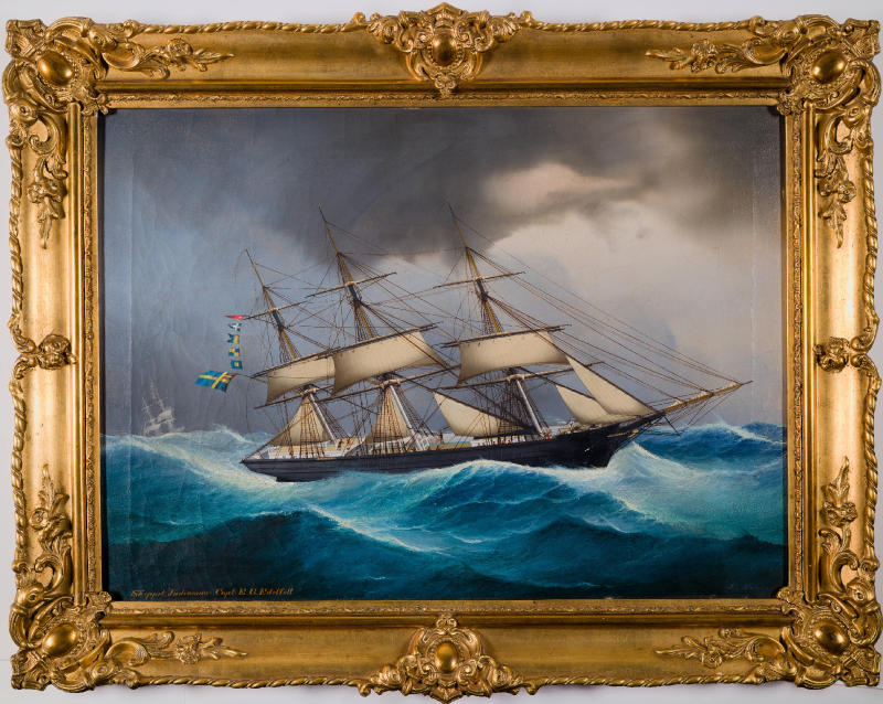 Heinrich Anders Sophus Petersenin vuonna 1870 maalaama kehystetty kapteenintaulu, ”Indiaman”- nimisestä fregatista. Alus rakennettiin Gävlessä vuonna 1856 P.C. Rettig & Co:lle. Alus oli Rettigien omistuksessa vuoteen 1869 saakka, jonka jälkeen se siirtyi Kapteeni Edelfeltin omistukseen. Alus upposi Pääsiäissaarten edustalla vuonna 1872.