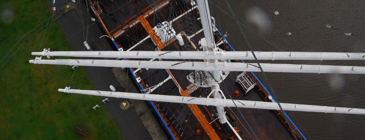 Näkymät Suomen Joutsenen mastosta takilan laskusta.