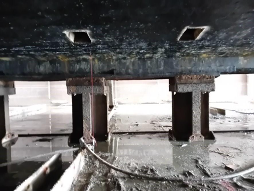 Sigynin köli lepää kölipukkien varassa Loke -telakan pohjalla. Mastojen tuennan parannushankkeen yhteydessä aluksen pohjaan sahattiin tukien jalkojen läpivientiaukot. Tukien asentamisen jälkeen laivan takilan köliin kohdistamaa painoa saatiin vähennettyä merkittävästi.