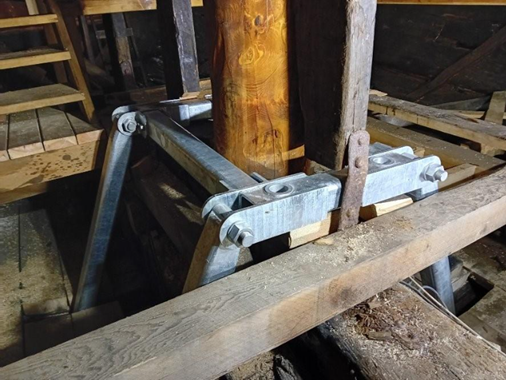 Korkealle kohoava masto kiinnittyy laivan alimpiin rakenteisiin. Vuoden 2025 aikana tehty tuenta vähentää takilan painon ja liikkeen aiheuttamaa rasitusta, joka kohdistuu laivan runkoon.